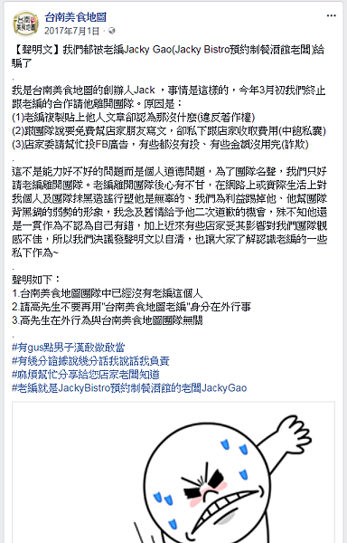 台南美食地圖粉絲團聲明文網址→https://www.facebook.com/foodintainan/photos/a.144844965669067.32932.133588763461354/857028457784044/?type=3